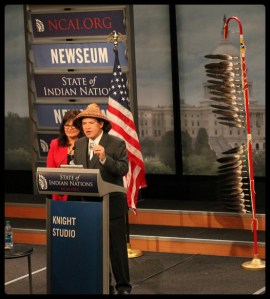 On Thrusday January 29th, 2014, the National Congress of American Indians hosted the 12th Annual State of Indian Nations event. It was the first SOIN presented by the new NCAI President Brian Cladoosby. As usual, the event followed the State of the Union by a few days. Hosted at the Newseum in Washington D.C.; the event is streamed live and posted for viewing later (see the rebroadcast here). Listen to an interview with President Clasoosby on NPR here.